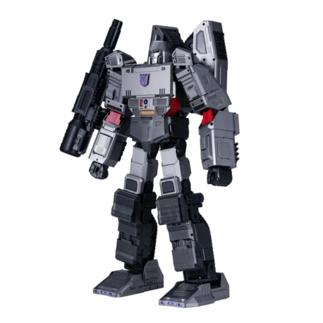 En collaboration avec Hasbro, Megatron brille par sa finition métallique brillante et sa fabrication à partir de matériaux haut de gamme. Intégrant une technologie de pointe, Megatron est propulsé par 36 servomoteurs et 118 micropuces, qui permettent au chef des Decepticons de marcher, de frapper et de taillader en mode robot, ou de grimper, de pivoter et de foncer sur l’ennemi grâce à la chenille intégrée en mode tank. Une expérience des plus authentiques jamais créées !